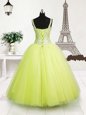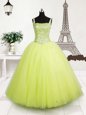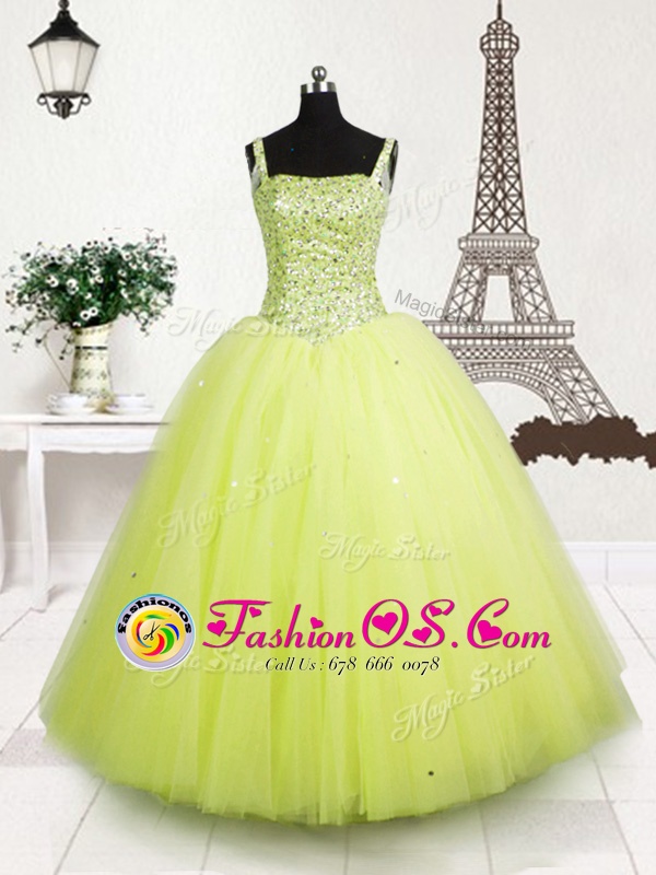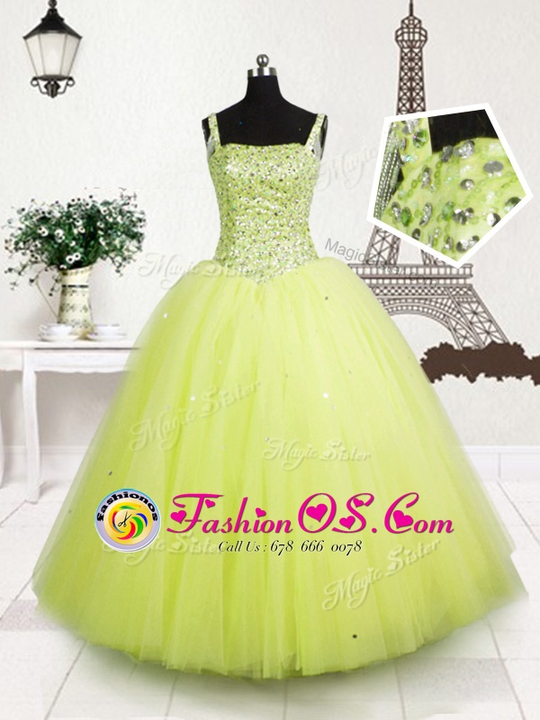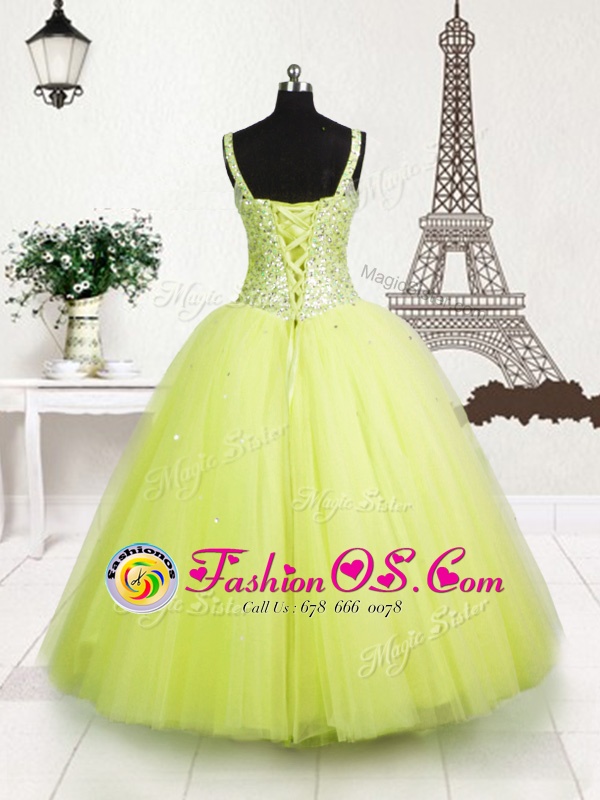 Gorgeous Tulle Straps Sleeveless Lace Up Beading and Sequins Little Girls Pageant Dress in Yellow Green