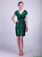 Gorgeous V Neck Short Sleeves Prom Gowns in Hunter Green