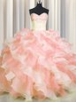Gorgeous Visible Boning Two Tone Ball Gowns Quinceanera Gown Multi-color Sweetheart Organza Sleeveless Floor Length Lace Up