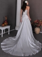 Gorgeous Wedding Dress A-line Hand Made Flowers Strapless Chapel Train Taffeta
