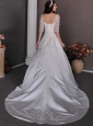 Gorgeous Wedding Dress A-line Square Appliques and Beading Chapel Train Satin