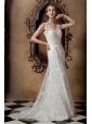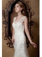 Home >  Wedding Dresses >  Elegant Wedding Dresses > Gorgeous Wedding Dress Column V-neck Brush Train Taffeta and Lace