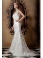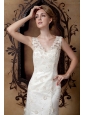 Gorgeous Wedding Dress Column V-neck Brush Train Taffeta and Lace