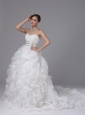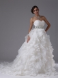 Home >  Wedding Dresses >  Popular Wedding Dresses > Gorgeous Wedding Dress Ruched Bodice Beaded Decorate Waist and Ruffled Layers In Arnold California