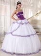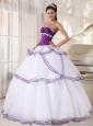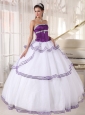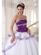 Home >  Quinceanera Dresses >  Discount Quinceanera Dresses > Gorgeous White and Purple Quinceanera Dress Strapless Floor-length Organza Appliques Ball Gown
