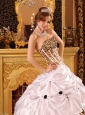Home >  Quinceanera Dresses >  Unique Quinceanera Dresses > Gorgeous White Quinceanera Dress Strapless Brush Train Taffeta and Zebra Ball Gown