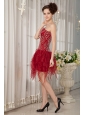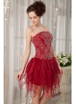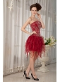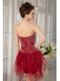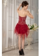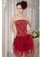 Gorgeous Wine Red Column Strapless Cocktail Dress Orange Beading Mini-length