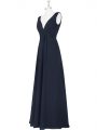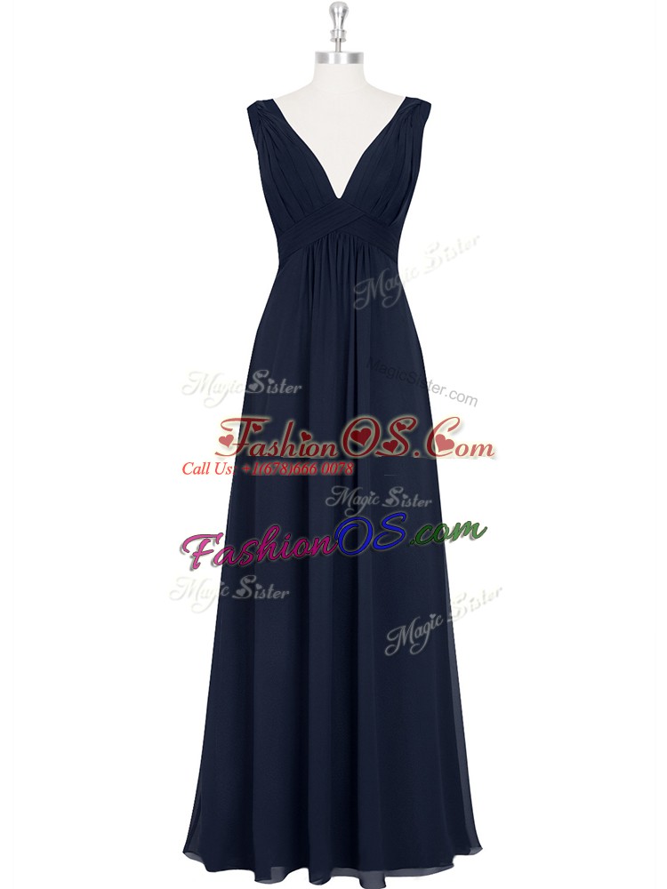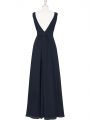 Graceful Black Chiffon Backless Prom Gown Sleeveless Floor Length Ruching