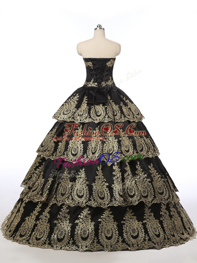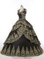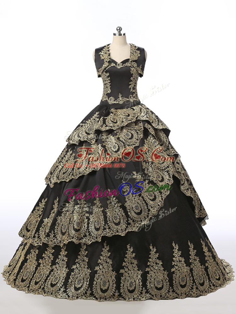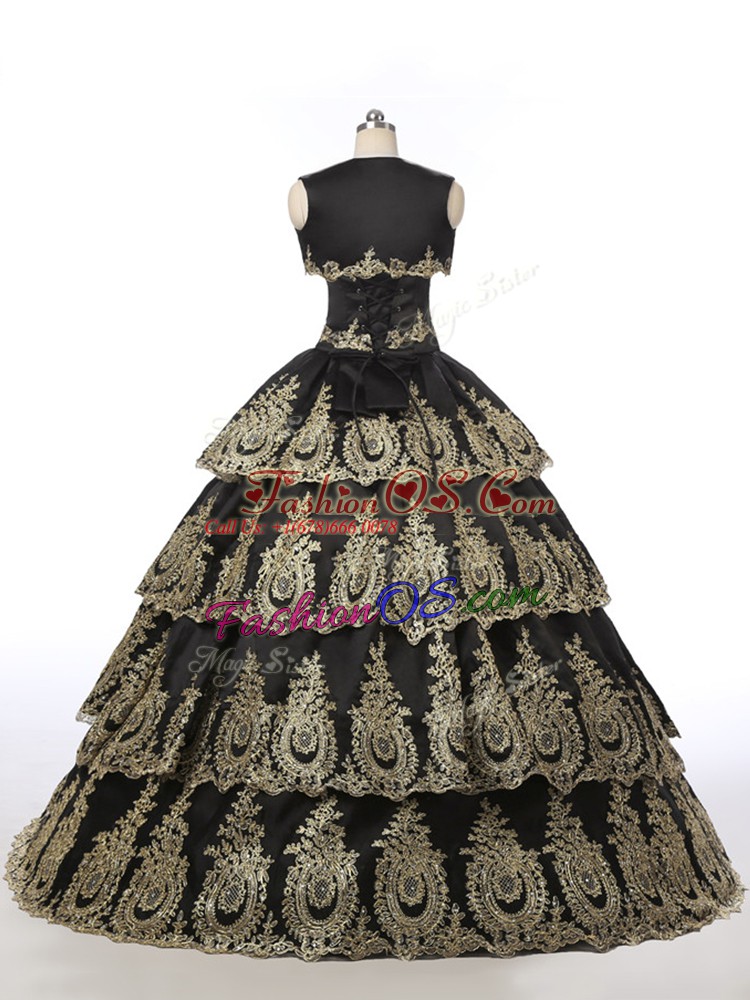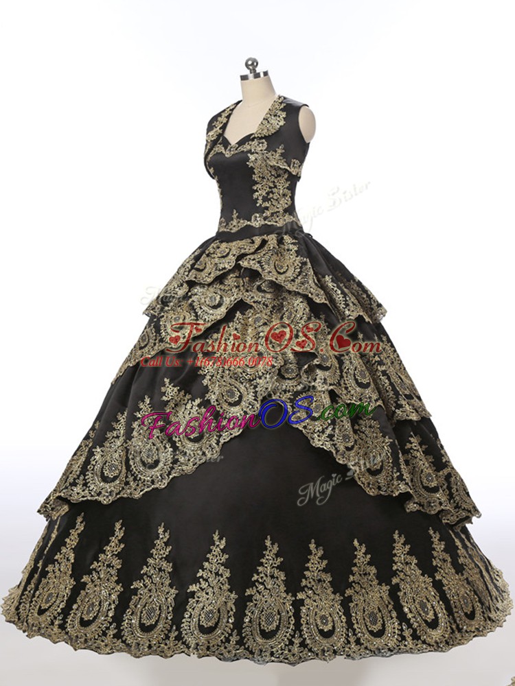 Home >  Quinceanera Dresses >  Cheap Quinceanera Dresses > Graceful Black Sleeveless Floor Length Embroidery Lace Up Quinceanera Gowns