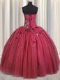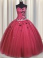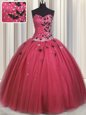 Graceful Coral Red Ball Gowns Sweetheart Sleeveless Tulle Floor Length Lace Up Beading and Appliques 15th Birthday Dress