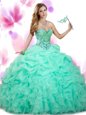 Home >  Quinceanera Dresses >  15 Quinceanera Dresses > Graceful Floor Length Apple Green Ball Gown Prom Dress Organza Sleeveless Beading and Ruffles and Pick Ups
