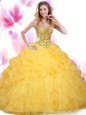 Graceful Floor Length Apple Green Ball Gown Prom Dress Organza Sleeveless Beading and Ruffles and Pick Ups
