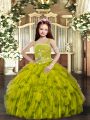 Home >  Special Occasion Dresses >  Beautiful Kids Pageant Dresses > Graceful Floor Length Lace Up Pageant Gowns Olive Green for Prom and Sweet 16 and Wedding Party with Ruffles