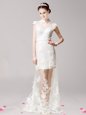Home >  Prom Dresses >  Perfect Prom Dresses > Graceful High-neck Cap Sleeves Brush Train Clasp Handle Prom Evening Gown White Tulle
