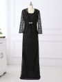 Home >  Special Occasion Dresses >  Elegant Mother of the Bride Dresses > Graceful Lace Long Sleeves Floor Length Mother Of The Bride Dress and Lace