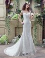 Home >  Wedding Dresses >  Elegant Wedding Dresses > Graceful Lace Sleeveless Wedding Dress Brush Train and Lace and Appliques