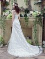 Graceful Lace Sleeveless Wedding Dress Brush Train and Lace and Appliques
