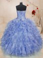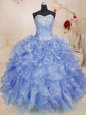 Graceful Light Blue Ball Gowns Organza Sweetheart Sleeveless Beading and Ruffles Floor Length Zipper Ball Gown Prom Dress