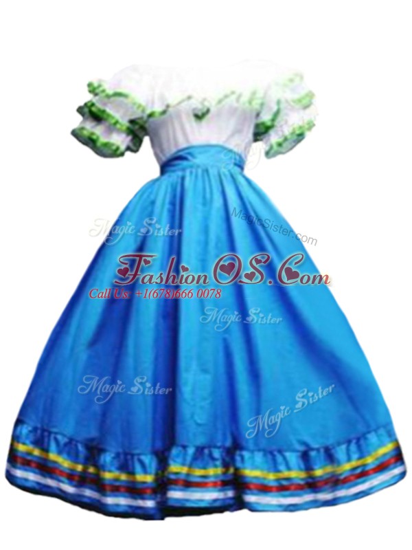 Graceful Off The Shoulder Short Sleeves Lace Up Sweet 16 Dresses Baby Blue Taffeta