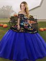 Graceful Off The Shoulder Sleeveless Lace Up 15th Birthday Dress Royal Blue Tulle