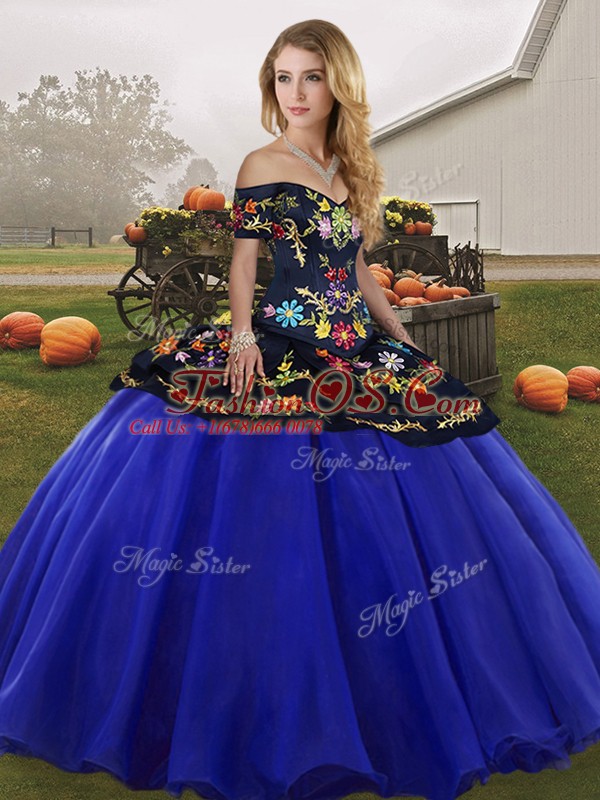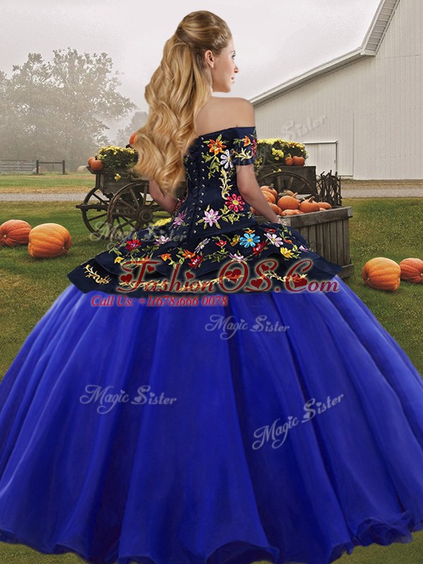 Home >  Quinceanera Dresses >  Quinceanera Dresses 2019 > Graceful Off The Shoulder Sleeveless Lace Up 15th Birthday Dress Royal Blue Tulle