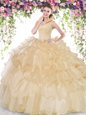 Home >  Quinceanera Dresses >  Unique Quinceanera Dresses > Graceful Organza High-neck Sleeveless Backless Beading and Ruffled Layers Sweet 16 Dress in Champagne