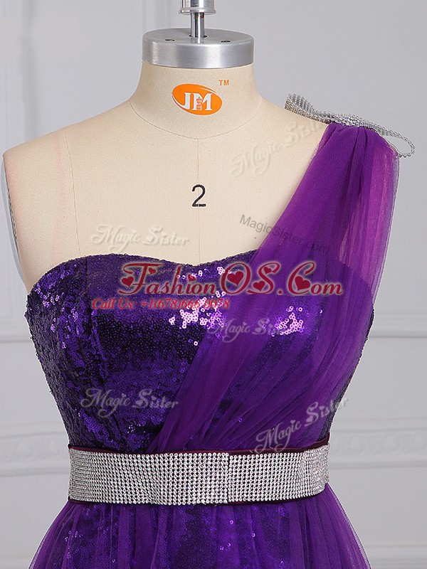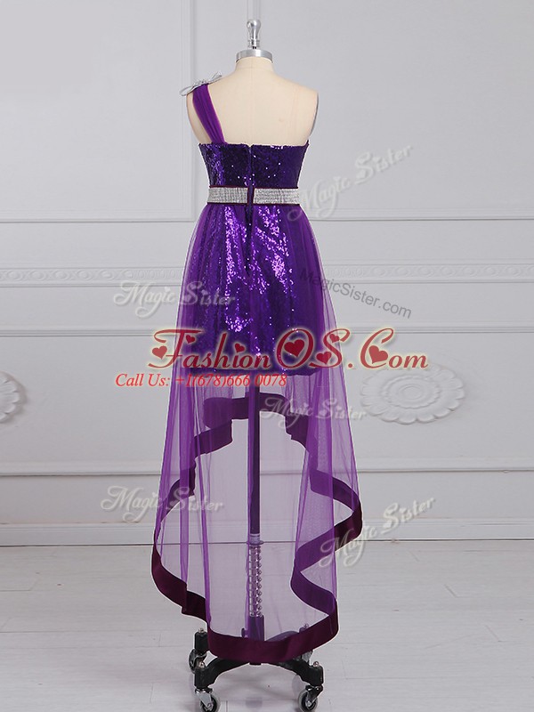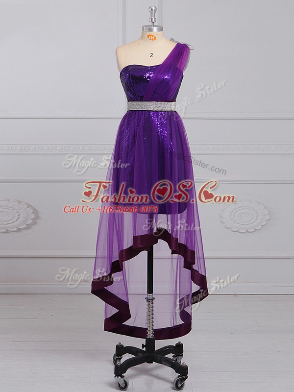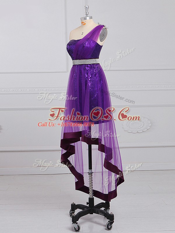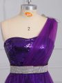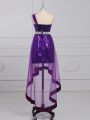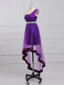 Graceful Purple Homecoming Dress Prom and Party and Sweet 16 with Beading One Shoulder Sleeveless Zipper