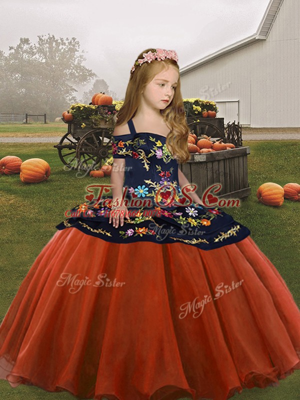 Home >  Special Occasion Dresses >  Pretty Little Girl Pageant Dresses > Graceful Rust Red Straps Lace Up Embroidery Kids Pageant Dress Sleeveless
