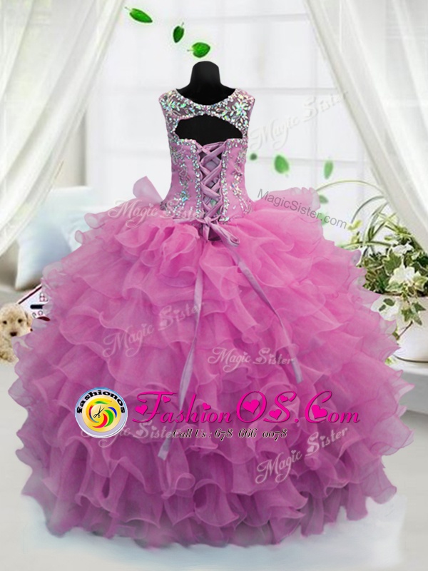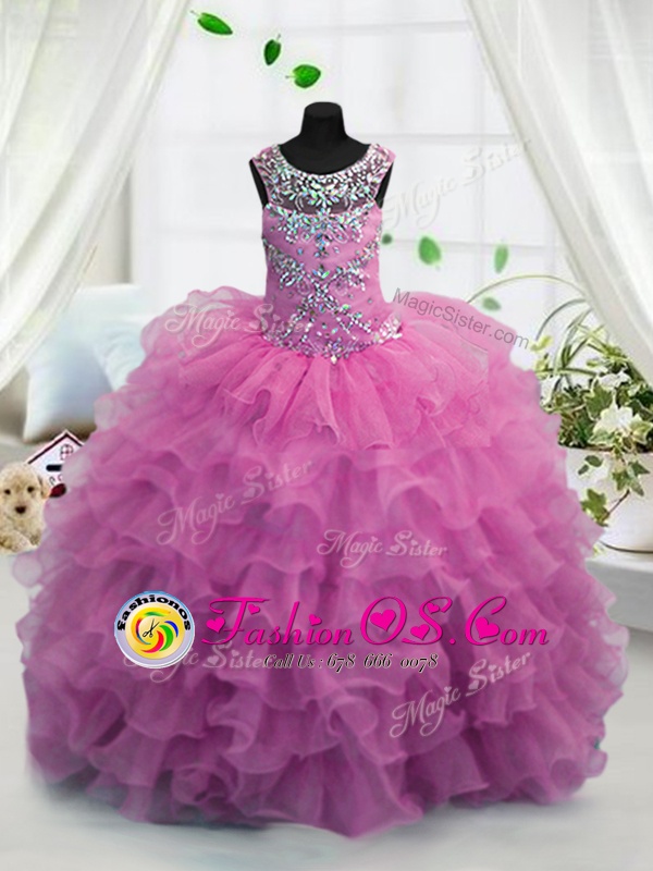 Home >  Special Occasion Dresses >  New Style Little Girl Pageant Dresses > Graceful Scoop Beading and Ruffled Layers Little Girl Pageant Dress Fuchsia Lace Up Sleeveless Floor Length