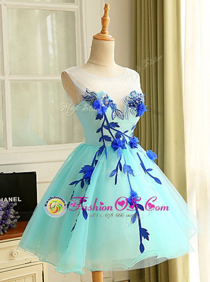 Graceful Scoop Blue Organza Zipper Prom Gown Sleeveless Mini Length Beading and Appliques
