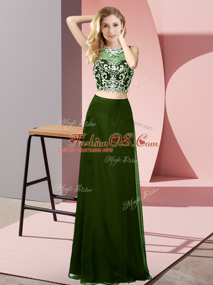 Graceful Scoop Sleeveless Backless Womens Party Dresses Olive Green Chiffon