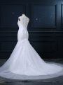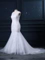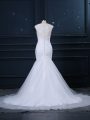 Graceful Scoop Sleeveless Tulle Wedding Dresses Lace Brush Train Clasp Handle
