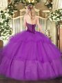 Graceful Sleeveless Floor Length Beading and Ruffled Layers Lace Up Quinceanera Dress with Green
