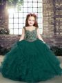 Graceful Straps Sleeveless Tulle Glitz Pageant Dress Beading and Ruffles Lace Up