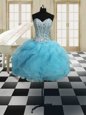 Home >  Quinceanera Dresses >  Sweet 16 Dresses > Graceful Three Piece Baby Blue Organza Lace Up Sweetheart Sleeveless Floor Length 15th Birthday Dress Beading and Ruffles