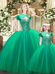 Graceful Turquoise Sleeveless Beading Floor Length Sweet 16 Dresses