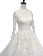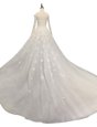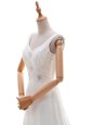 Graceful White Backless Wedding Dress Beading Sleeveless With Brush Train