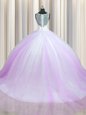 Home >  Quinceanera Dresses >  Discount Quinceanera Dresses > Graceful Zipper Up Lilac Sleeveless Brush Train Beading With Train Quince Ball Gowns