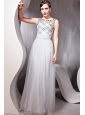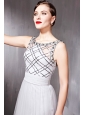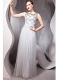 Gray Empire Bateau Floor-length Chiffon Sequins Prom/Pageant Dress