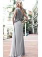 Gray Empire One Shoulder Floor-length Chiffon Beading Prom Dress