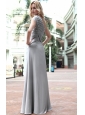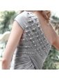 This exquisite gray prom dress designed with a singular strap of stitched fabric at the shoulder, creating the sexy asymmetric neckline. The fitted bodice is adorned with crossed girddles and the lovely beadwork that attracts the most attention.The slim-line skirt flows freely and completes this wonderful design.