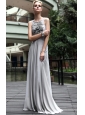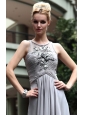 Gray Empire Scoop Neck Floor-length Chiffon Beading Prom Dress