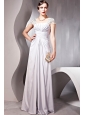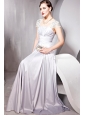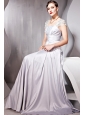 Gray Empire Square Floor-length Elastic Woven Satin Ruch Prom Dress