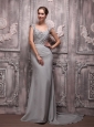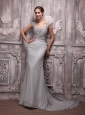 Gray Empire V-neck Brush Train Chiffon Beading Prom / Evening Dress