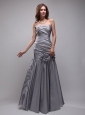 Gray Mermaid Sweetheart Floor-length Taffeta Hand Made Flowers Prom / Evening Dress