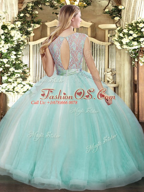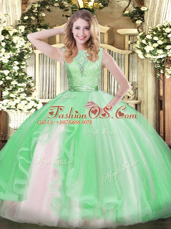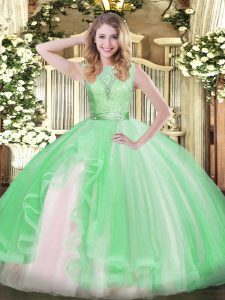 Home >  Quinceanera Dresses >  Fast Delivery Quinceanera Dresses > Great Apple Green Organza Backless Quince Ball Gowns Sleeveless Floor Length Lace and Ruffles
