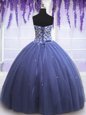 Great Beading Quinceanera Gowns Purple Lace Up Sleeveless Floor Length