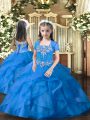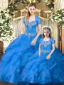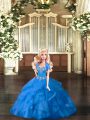 Great Blue Lace Up Sweetheart Beading and Ruffles 15 Quinceanera Dress Tulle Sleeveless