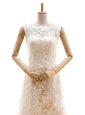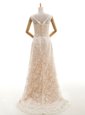 Home >  Wedding Dresses >  Plus Size Wedding Dresses > Great Champagne Wedding Gowns Wedding Party and For with Lace Bateau Sleeveless Sweep Train Clasp Handle