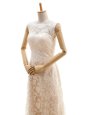 Great Champagne Wedding Gowns Wedding Party and For with Lace Bateau Sleeveless Sweep Train Clasp Handle